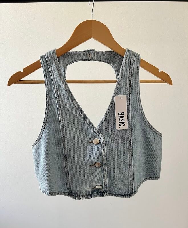Top de jean que combina comodidad y estilo en un solo diseño.